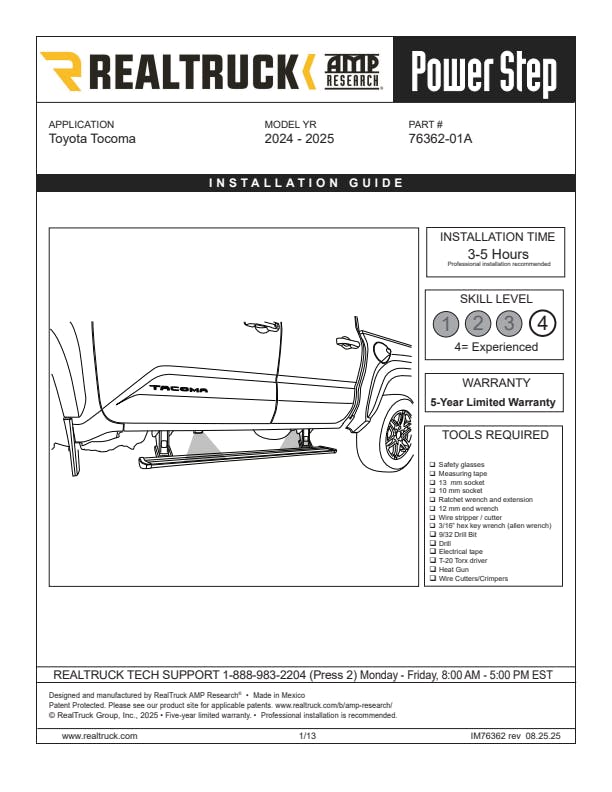 PowerStep Plug-N-Play Automatic Power-Deploying Running Boards fits 2024-2026 Toyota Tacoma