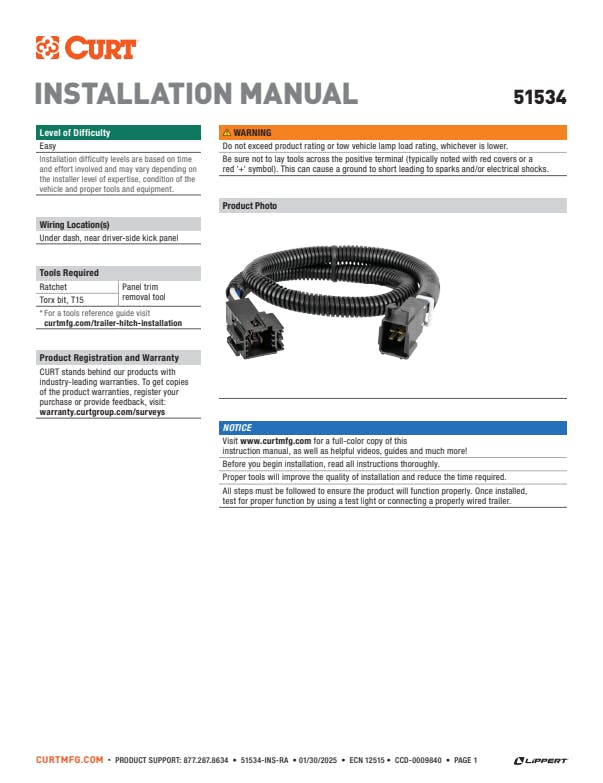 - Allows a CURT trailer brake controller to be plugged into OEM socket