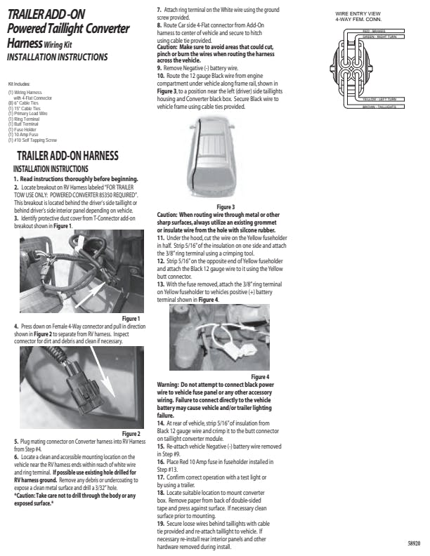 58920 Towed-Vehicle RV Wiring Harness Add-On, 4-Pin Trailer Wiring |