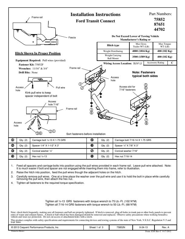 Draw-Tite custom-fit hitches are built according to manufacturer vehicle weight specifications and model year to ensure a perfect fit and top towing performance. Featuring solid all-welded construction for maximum strength and safety, every hitch meets and exceeds industry standards. 2" Square Receiver Tube Opening Max-Frame receivers are designed for trucks, vans and sport utility vehicles Neat Appearance, All Frame Attachments E-Coat Base w/ Black Powder Coat Finish Rated up to 3,500 lbs. (GTW) Weight Carrying (WC)Rated up to 4,000 lbs. (GTW) Weight Distributing (WD) Solid All-Welded Construction for Maximum Strength and Safety Custom Built According to Manufacturer & Model Year Ensures Perfect Fit and Top Towing Performance Computer-Aided Design and Fatigue Stress Testing Designed to Withstand Road Abuse Within Specified Capacities Backed by a Nationwide Limited Lifetime Warranty