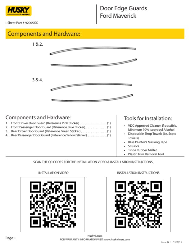- Husky Liners® Door Edge Guards take the hits, then come off clean when the job’s done—no residue, no dents, no problem. That’s protection that pays off.