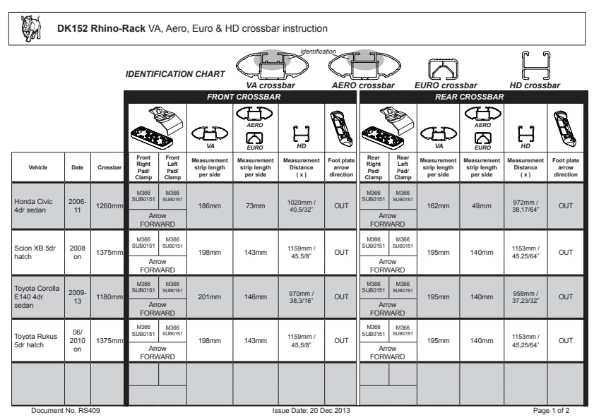 Rhino-Rack's DK kits are used in all the 2500 roof rack systems. The kit consists of the pads and clamps which attach to your vehicle's roof. The kit includes 4 pads and 4 clamps.