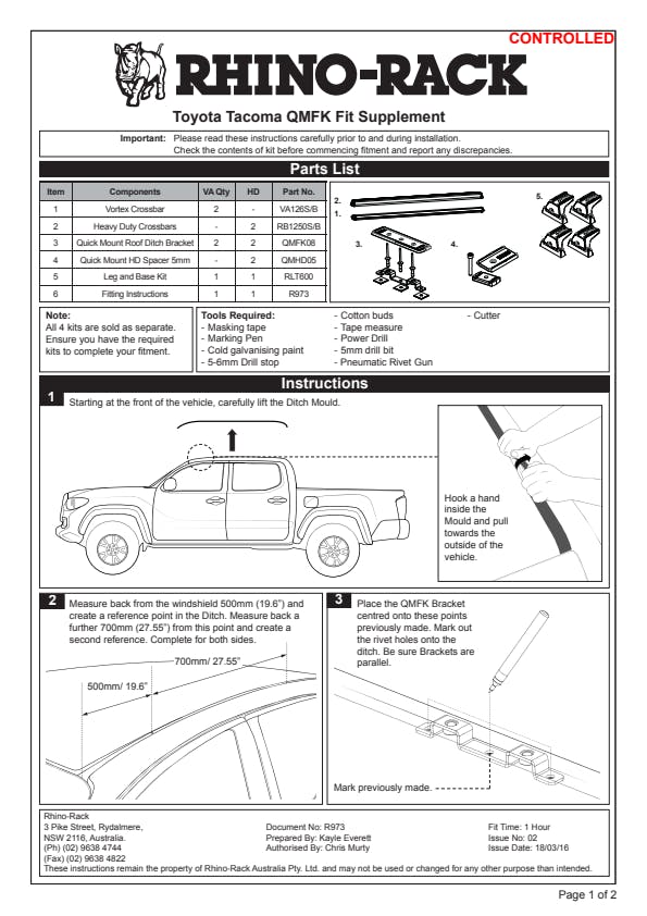 This Vortex Quick Mount RLT600 roof rack system is attached to the set of factory tracks on your vehicle's roof. It is the legs that make the RLT600 stand out; a simple trigger locking system means once you're done utilizing the roof space the system can be removed with one hand. Remove the lockable cover plate, pinch the red triggers together and you're done. Engineering and design reinforces Rhino-Rack's commitment to the strength and durability of the Vortex Quick Mount RLT600.