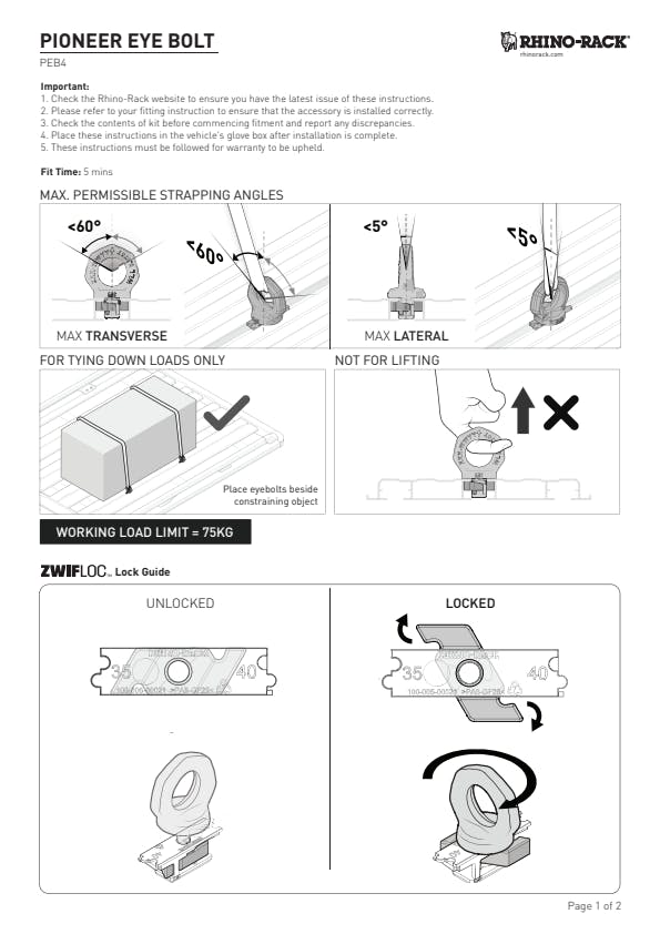 (4) is designed to provide versatile tie down points for your Pioneer platform, Reconn-Deck or Vortex cross bars. The kit Includesdes 4 Eye Bolts, each with the patented Zwifloc
