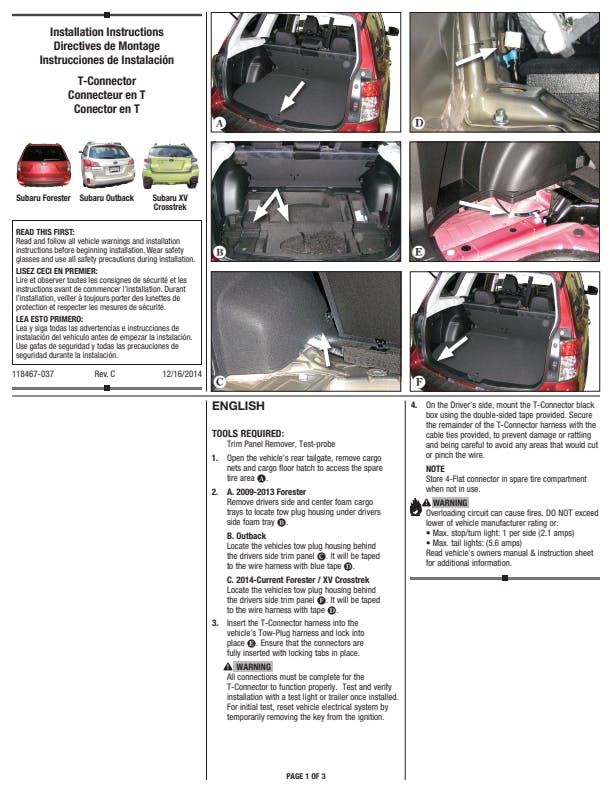 T-One Connectors require no splicing of vehicle wires. Simply locate your vehicles wiring harness connector, unplug the connection and insert the T-One Connector into the vehicle's harness. No special tools required. Factory appearanceQuick and easy installationSolid, weatherproof, one-piece constructionNo cutting, splicing or taping of vehicle wiresIncludes converter where needed16 gauge bonded wire with 4-Flat plug & capStop/Turn circuit capacity of 4.2 AmpsTaillight circuit capacity of 7.5 Amps1 year limited warrantyStop/Turn circuit capacity of 2.1 Amps