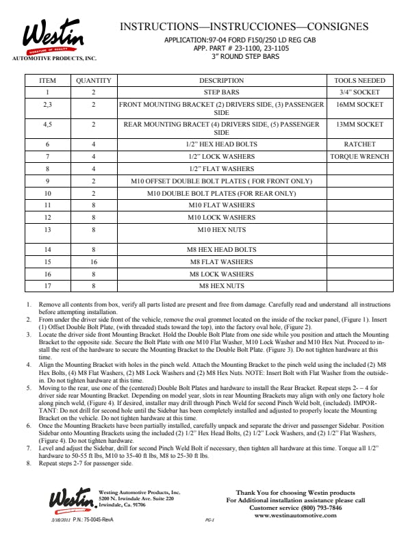 Westin(TM) E-Series Nerf Bars are made of 3in. diameter round tubing and are vehicle specific designs. Step design and mounting technique varies by application (mounting kit included). They feature recessed area mounted step pads unique to E-Series Nerf Bars feature the Westin(TM) brand name and are UV resistant.