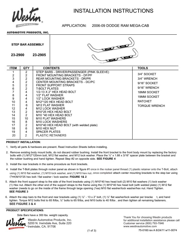 Westin(TM) E-Series Nerf Bars are made of 3in. diameter round tubing and are vehicle specific designs. Step design and mounting technique varies by application (mounting kit included). They feature recessed area mounted step pads unique to E-Series Nerf Bars feature the Westin(TM) brand name and are UV resistant.