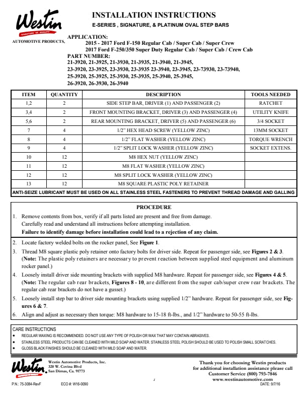 Westin(TM) E-Series Nerf Bars are made of 3in. diameter round tubing and are vehicle specific designs. Step design and mounting technique varies by application (mounting kit included). They feature recessed area mounted step pads unique to E-Series Nerf Bars feature the Westin(TM) brand name and are UV resistant.