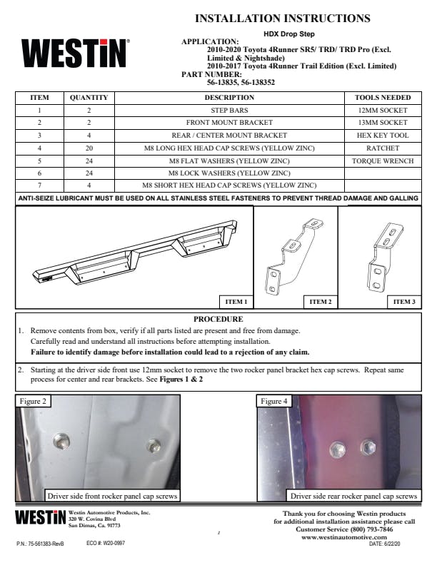 Westin's HDX Stainless Drop Nerf Step Bars are built with corrosion-resistant, textured black painted stainless steel designed to last under the toughest of conditions. With 1-piece construction, these nerf step bars provide over 2 added inches of toe/heel step area than our competitors and fit tight to the vehicle's rocker panel for a solid fit and rugged look. HDX Stainless Drop Nerf Step Bars include stainless steel step pads. Step plates are rust resistant and provide maximum traction. Bolt-on installation with no drilling is required. Includes mount kit.