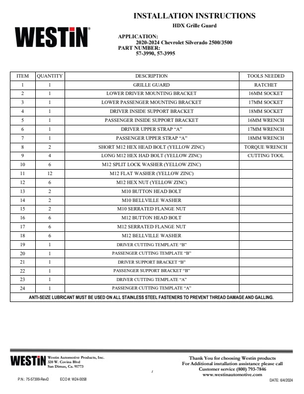 AMZ Title Westin 57-3995 HDX 1-Piece Grille Guard fits 2020-2024 Silverado 2500 3500